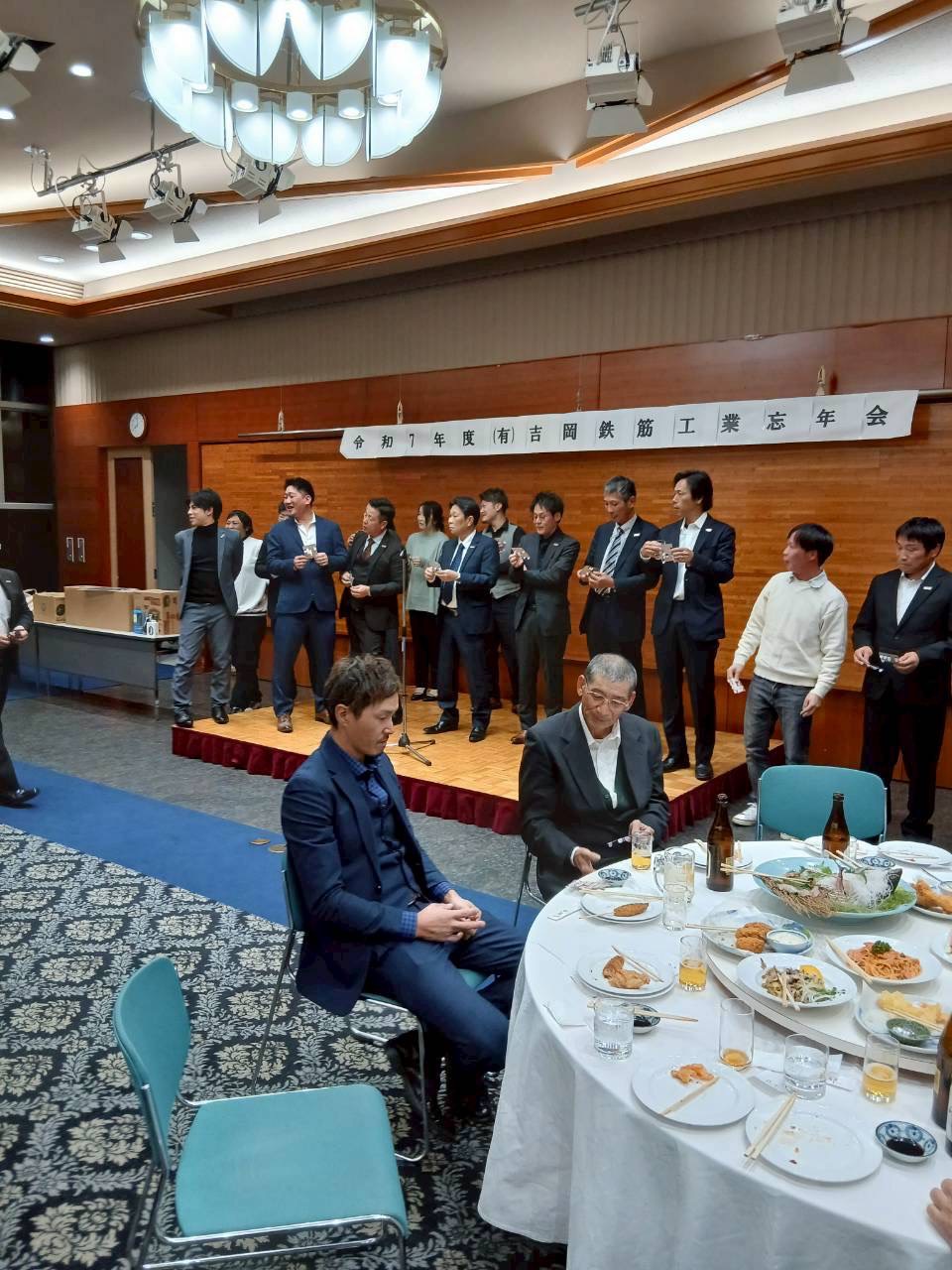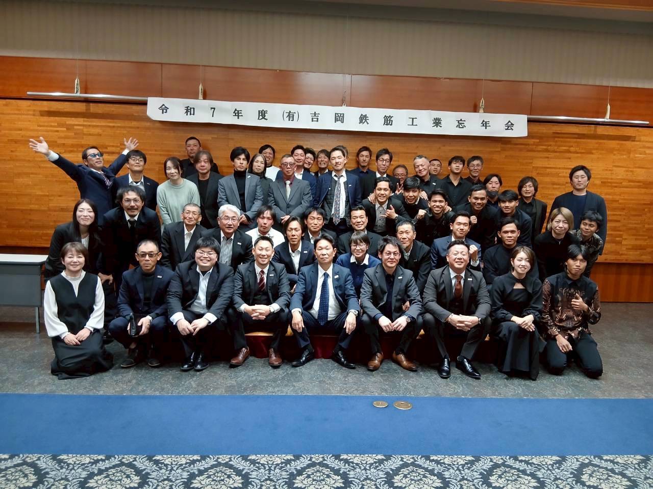 2025.12.16 令和7年 忘年会を開催しました 先日、令和7年の忘年会を開催しました。 一年の締めくくりとして、日頃の労をねぎらいながら、 社員同士でゆっくりと交流できる時間となりました。 会場では、仕事の話からプライベートな話まで会話が弾み、笑顔あふれる忘年会となりました。 普段は現場でそれぞれの役割を担っていますが、こうした場で顔を合わせ、想いを共有できることはとても大切だと感じます。 今年も無事に一年を終えられたのは、社員・技能実習生一人ひとりの頑張りのおかげです。 来年も安全第一で、チーム一丸となって取り組んでまいります。 SHARE POST 前へ 一覧へ戻る